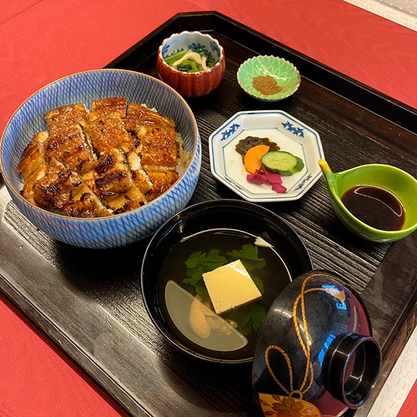 鰻を丸々1匹使った贅沢なうなぎ丼です。脂ののった美味しい身はお丼に、肝は肝吸いに、しっぽの部分は茶碗蒸しにと1匹の鰻を余すことなくご提供いたします。有田名物の呉豆腐も付いております。