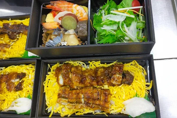 おひとり様分で半身分の鰻をたっぷり使用しています。サラダに煮物と二段重ねとなるお弁当で、満足感のあるものとなっております。土用のうなぎの日以外でもご利用いただけます。
