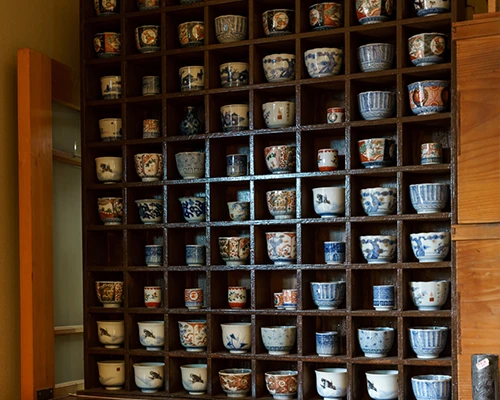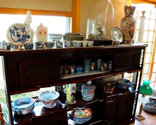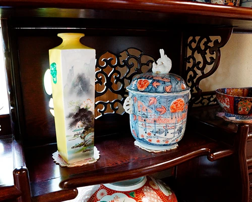 随所に古美術を飾りつけ、店内を鮮やかに彩ります。