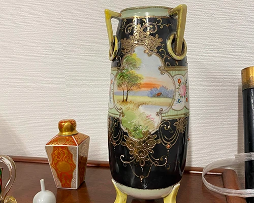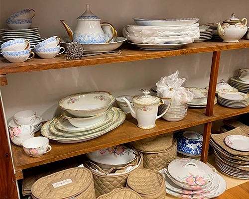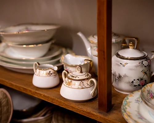 骨董部屋には陶磁器のほかに硝子や洋食器も飾っており、
